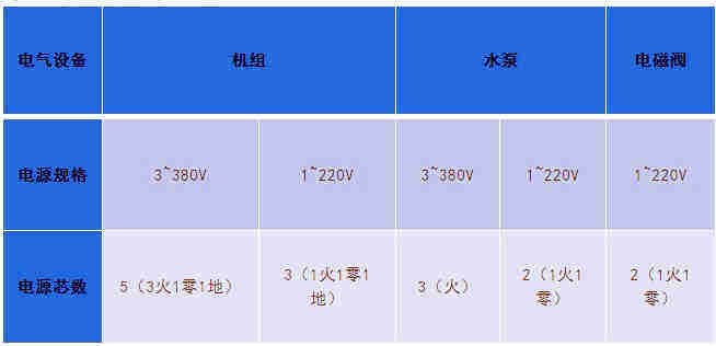 根據線徑選型,計算出火線線徑,然后根據設備電源芯數來選擇電纜規格。單相電源的零火線一般為同一規格,三相電源的零線比火線小1-2個規格。詳見電線電纜規格表。